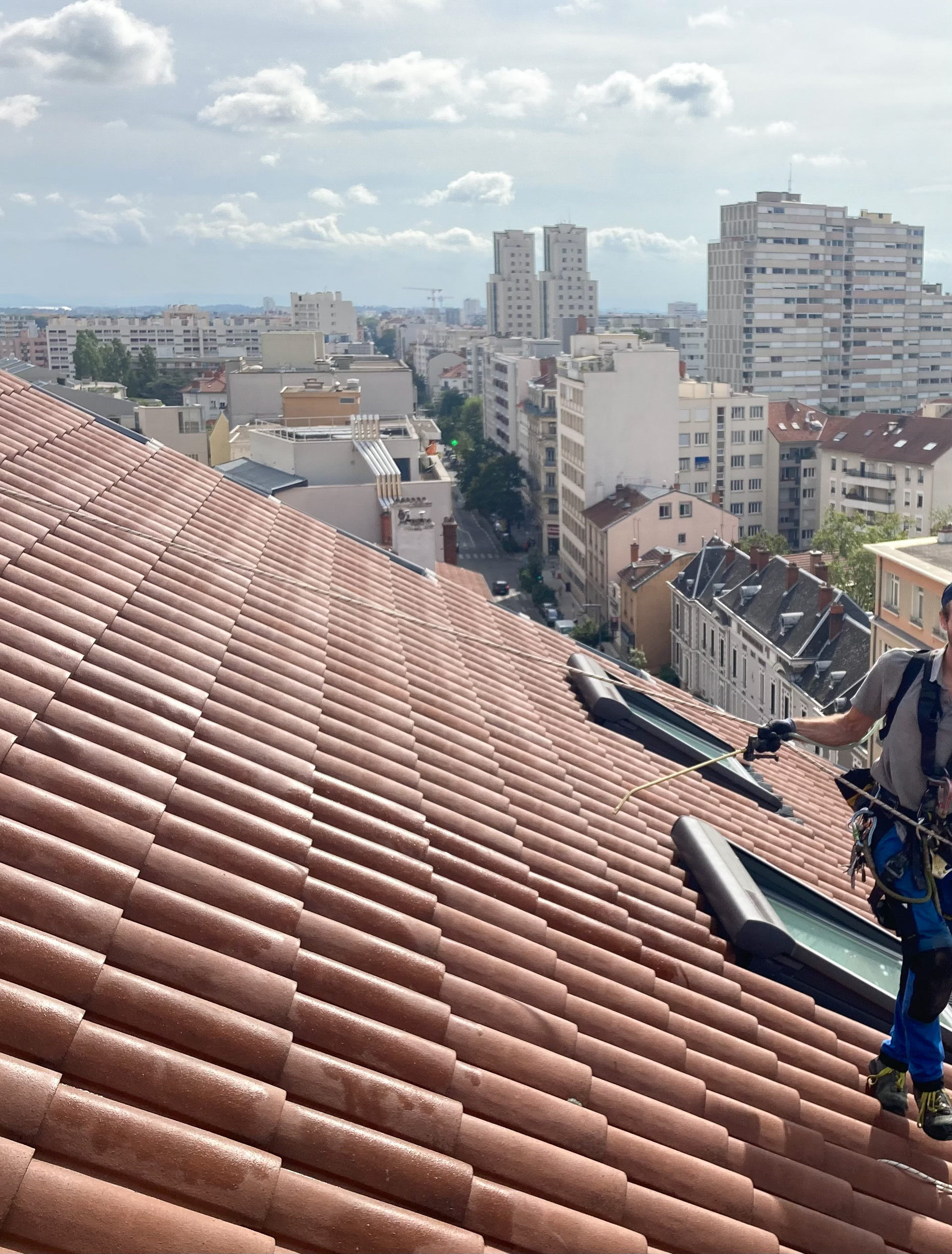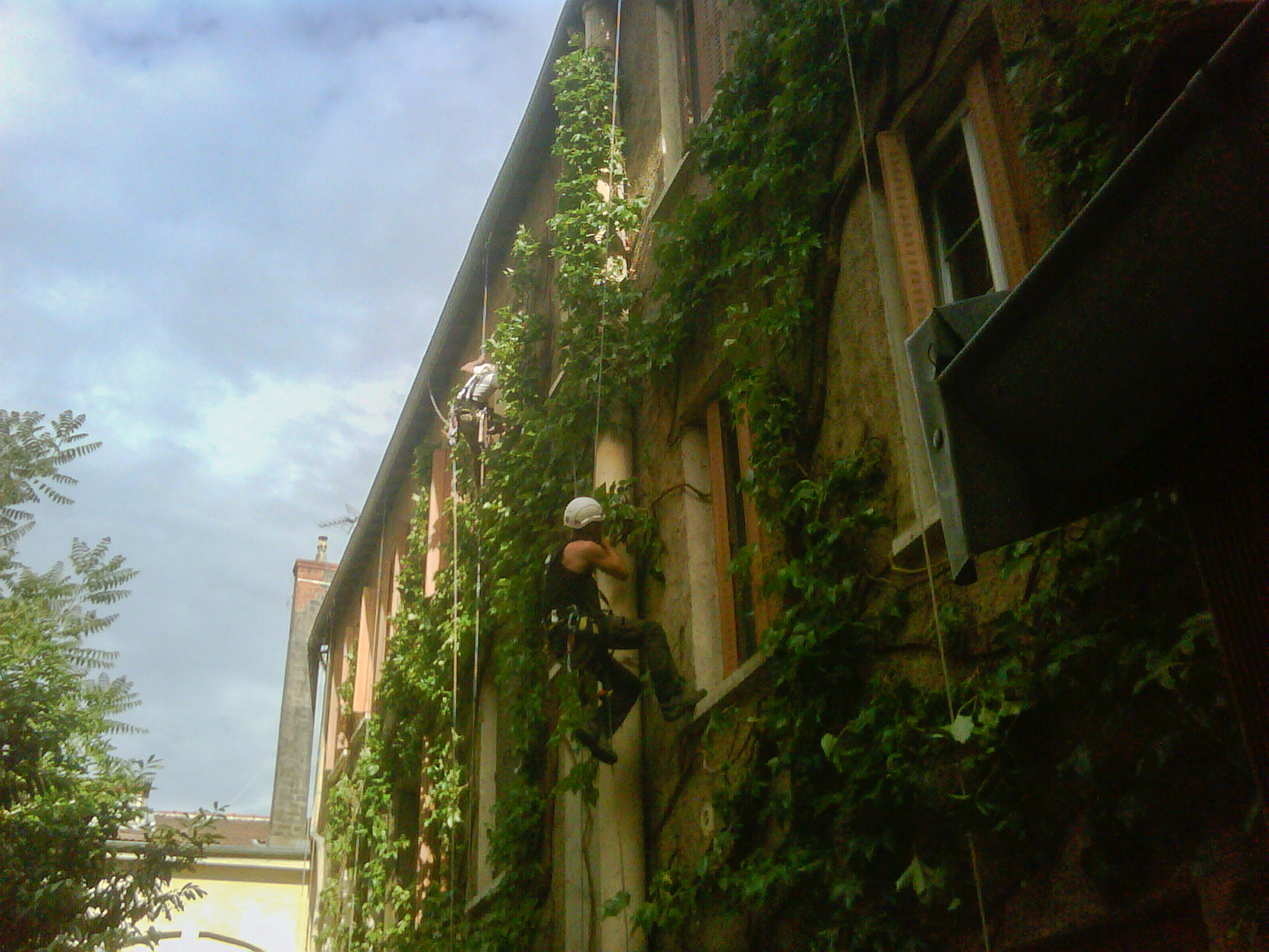 La Cordée Lyonnaise assure l’entretien des plantations murales, la dévégétalisation et le démoussage de toitures grâce à un accès sur cordes aux zones difficiles, des méthodes écologiques et des interventions qui embellissent et protègent façades et toitures.