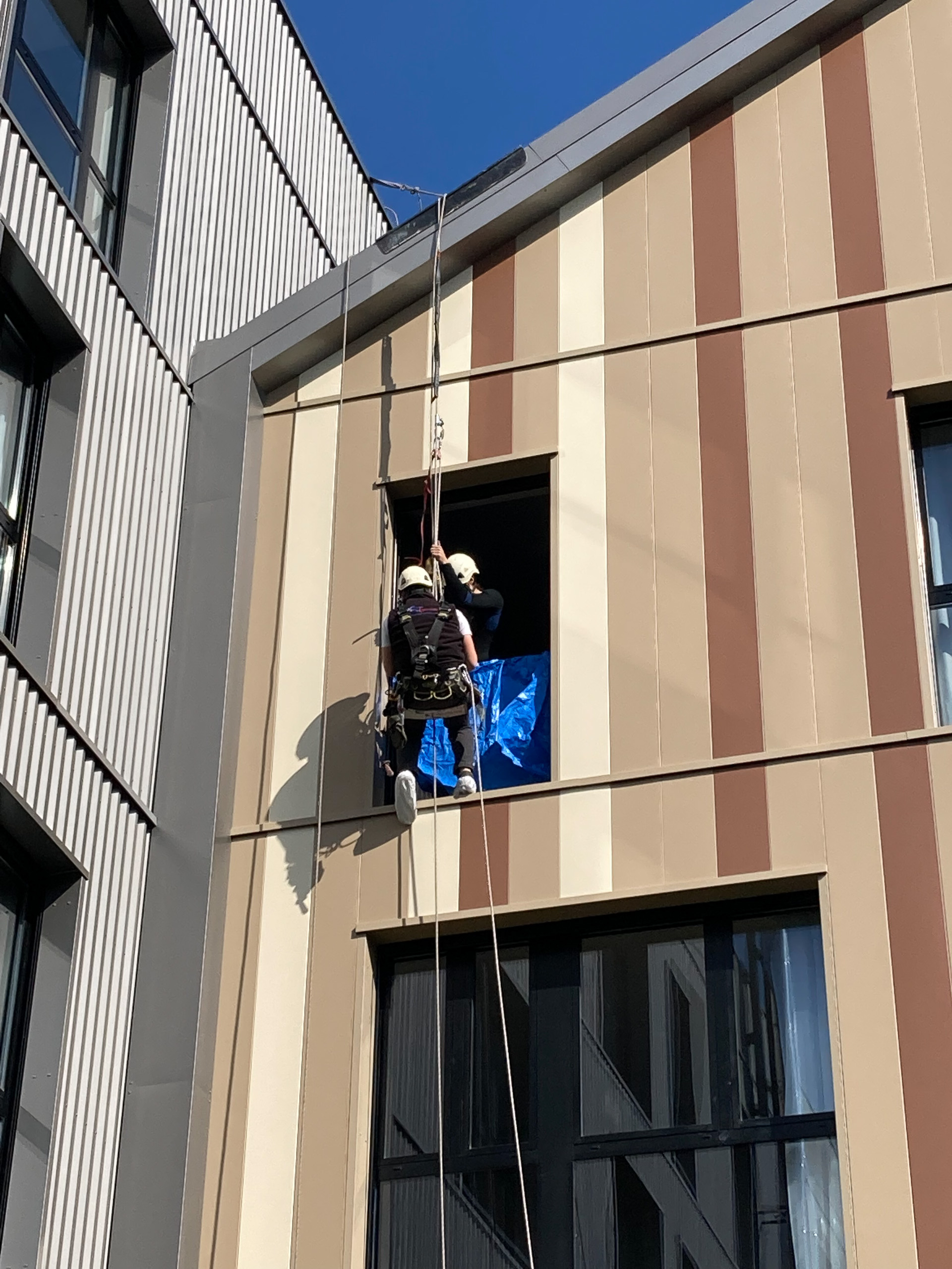 Un accès sur cordes dans les zones difficiles, en cas d’impossibilité technique de mise en place de nacelles-élévatrices ou échafaudages.
